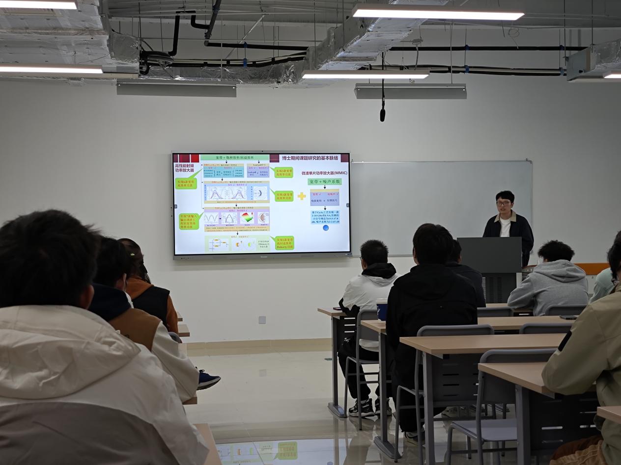 轩雪飞博士从5G和未来6G发展需求出发,详细介绍了“无线通信中高性能功率放大器研究”。并以自己的学习和工作经历,向研究生讲解了如何独立开展科学研究做好研究生论文,如何从研究生一年级就开始对自己的未来做长远规划,以便更好地适应社会对人才的需求。