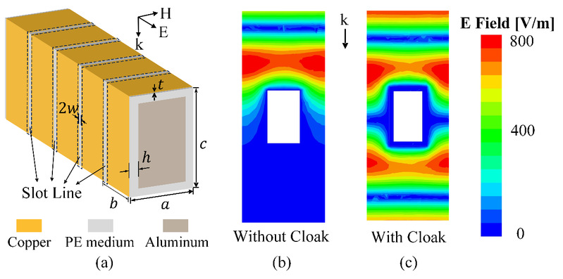 为验证该三维隐身方法的可行性,研究团队以方形金属管这一典型三维目标为例,设计并制备了一种共形包覆式隐形斗篷原型。该斗篷并非平面贴附结构,而是沿目标外表面完整包覆,在三维空间中实现电磁场连续调控。其在最低工作频点处的结构厚度仅为自由空间波长的 1/35(λ/35),并采用工业兼容的电镀工艺加工于柔性塑料基板上,兼顾了超薄化与工程可实现性。实验结果表明,在 3.1–3.7 GHz 频段内,该三维隐形斗篷可实现 超过 10 dB 的雷达散射截面积减缩。周期结构仿真、三维全波散射仿真、等效电路计算结果与微波暗室实测数据之间高度一致,验证了所提出三维微波电路模型对实际三维隐身行为的准确描述能力。